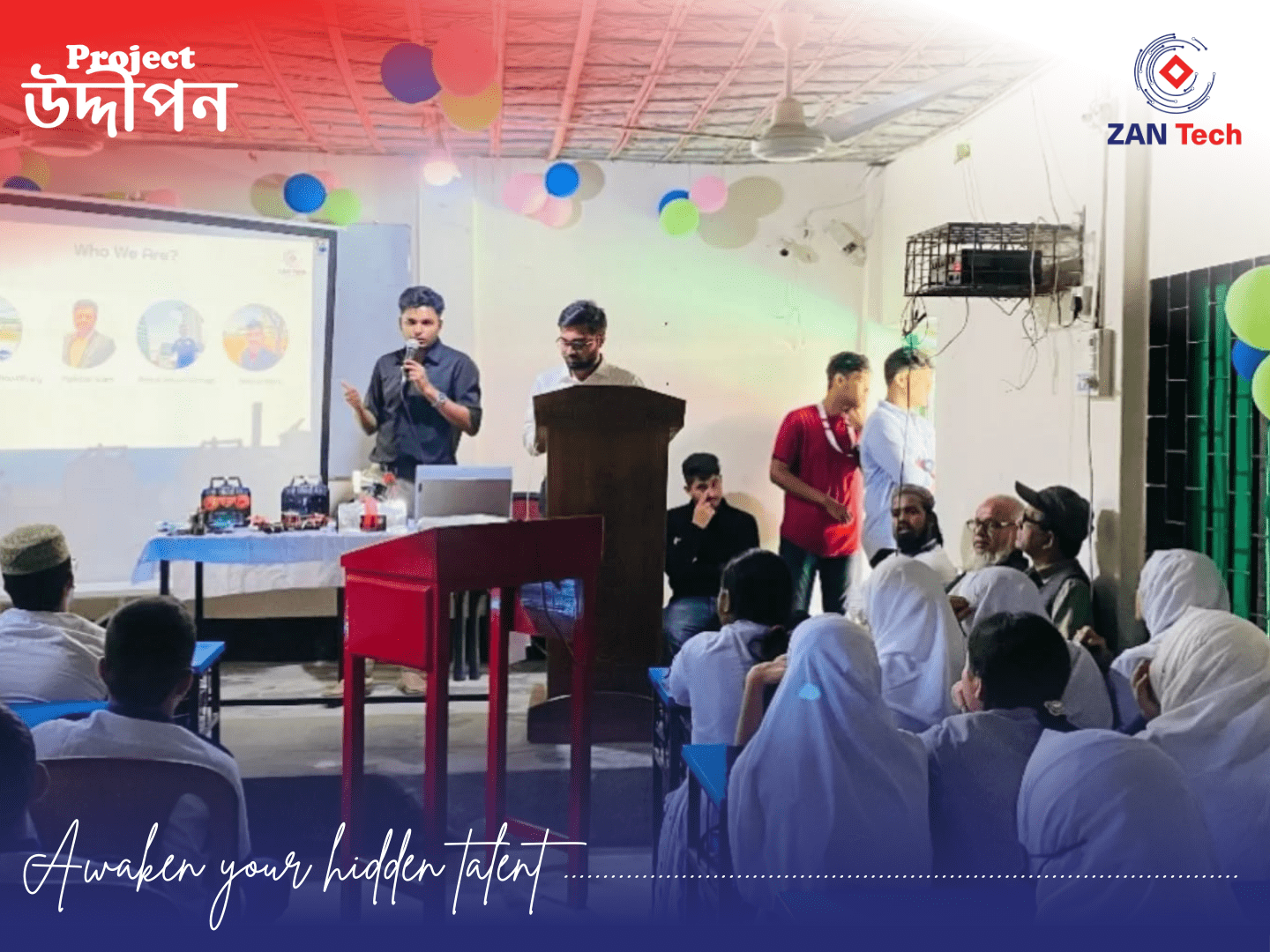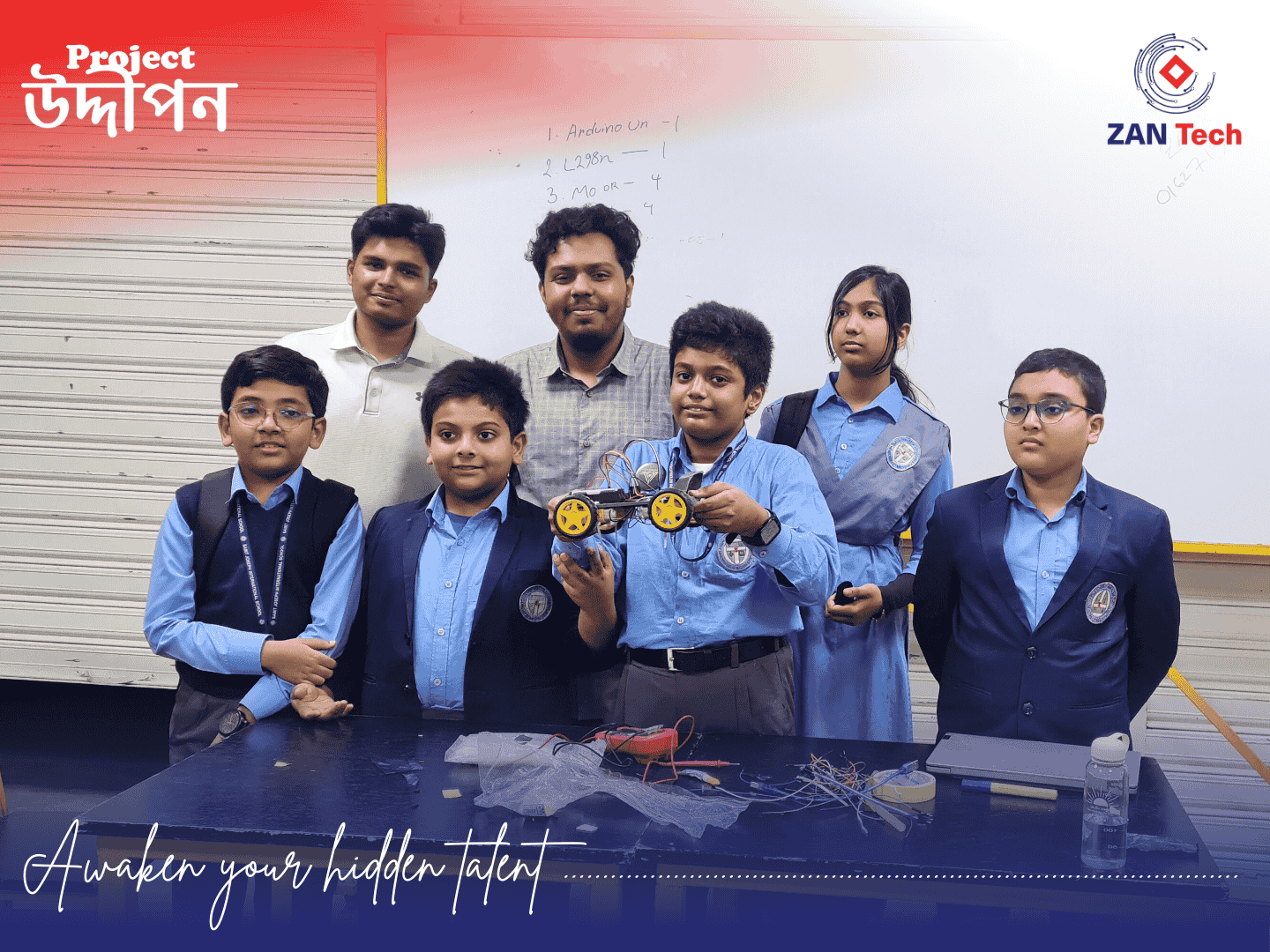 Project Uddipon (উদ্দীপন – “inspiration” or “ignition”) is a nationwide STEM empowerment initiative by ZAN Tech. We design and deliver free, high-quality workshops on Robotics, Programming, AI/ML and IoT for students across Bangladesh.