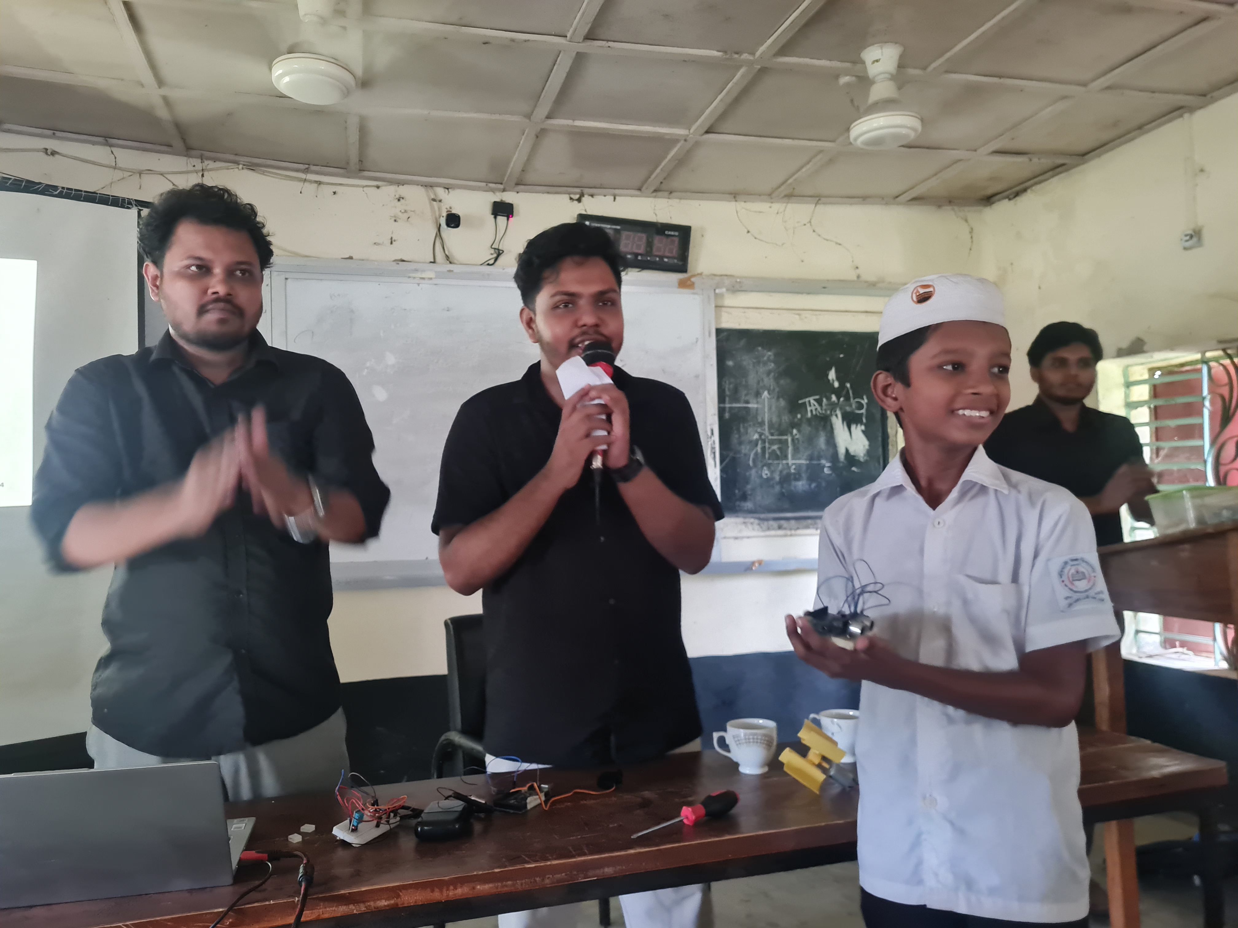 Uddipon has already conducted workshops at institutions such as Feni Govt College, Sharishadi High School, Sonagazi Girls’ Pilot High School and others — introducing robotics, AI and IoT to students who had never seen these technologies before.